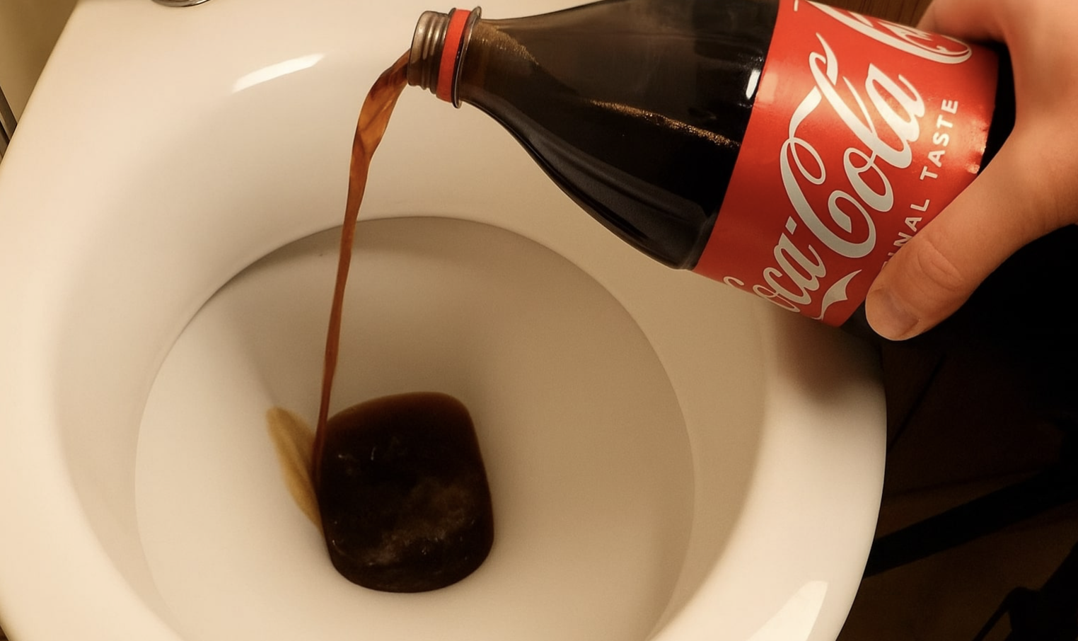 Hard water is a common issue in many households, and it often leaves behind stubborn limescale inside the toilet. This hard, chalky buildup forms when minerals in the water settle on the porcelain, creating yellow, brown or even white crusts that are difficult to remove. Traditional toilet cleaners don’t always dissolve these minerals completely, which is why some areas stay stained no matter how much you scrub. Because limescale sticks so firmly to the surface, many people start looking for simple, inexpensive solutions using products they already have at home. That’s where the idea of using cola comes from. The drink contains mild acids that can, in theory, soften mineral deposits over time. It has led many people to wonder whether a bottle of cola could clean the toilet just as well as a regular cleaner!