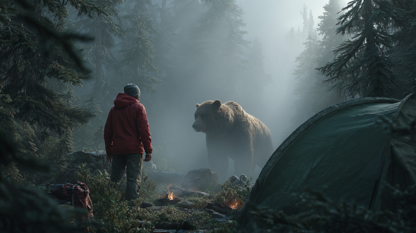 Ryan stayed completely still. He knew that running would be a mistake. The bear’s eyes gleamed, deep and intelligent, as it sniffed the cold air between them. “Easy now,” Ryan whispered, barely moving his lips. His bear spray was in the backpack by his feet, but reaching for it might trigger the animal. The bear shifted its weight and took a slow step forward, its paws sinking softly into the damp soil. Ryan’s whole body tensed. Then, unexpectedly, the bear tilted its head, almost curious, as if trying to figure him out.