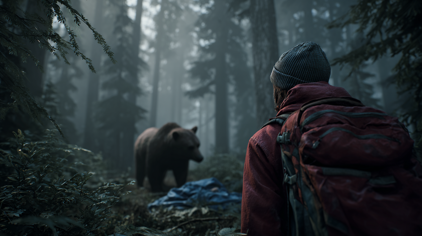 Ryan hesitated at the edge of the clearing. Every muscle in his body screamed to stay back, yet curiosity pulled him forward. The bear’s movements were careful, almost gentle. It lowered its head and set the object on the ground, then stood there, motionless, breathing hard. Ryan squinted through the fog. The shape wasn’t an animal. It looked like fabric—an old, torn jacket wrapped around something small. The bear didn’t act threatening. It simply stared at him, as if waiting for him to understand.