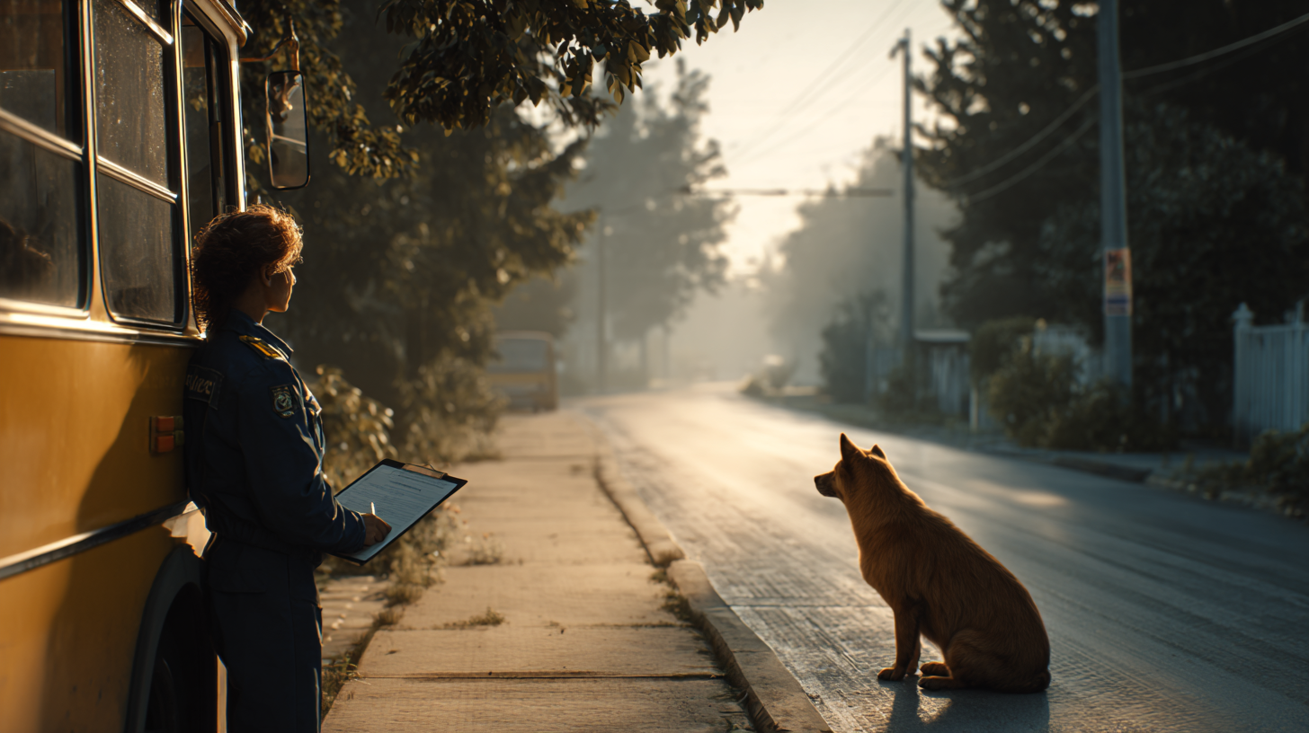 As she wondered, a quiet voice spoke behind her. “You’re not the first person to follow him.” Laura turned to see an older woman standing near her mailbox. The woman’s eyes were kind but sad. “He’s been doing this every day since his owner passed away. He waits for him to come home on that bus… but he never will.”